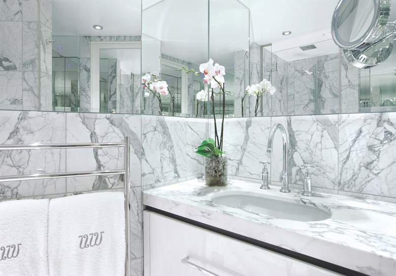 The lavishly appointed Royal Suite has handcrafted Savoir® of England beds, 100% Egyptian cotton linens, and a menu of pillow options. The suite also features a full open-air balcony.The Royal Suite offers additional benefits, including a separate and spacious living room, and a bathroom with a separate rain shower and tub, as well as a secluded toilet and bidet area.All suites are uniquely decorated and have additional amenities and services, including in-suite special butler service, packing and unpacking assistance, full breakfast menu, daily fruit and cookie plate, elegant evening snack, robes and slippers, iPod® docking station, Nespresso coffee machine and fine teas, fully stocked mini bar, free laundry and shoe shine service, bottle of wine upon arrival, Hermés bath products and a special dinner in L'Orangerie Sky Lounge.Other amenities include generous built-in closets, hair dryer, individual climate-control thermostat, direct-dial telephone, infotainment centre with flat-screen TV and complimentary movie and entertainment options, bottled water, and a safe. Marble bathrooms feature L’Occitane en Provence bath and body products, plush towels, special towel warmers, backlit magnifying mirror, and cozy waffle bathrobes and slippers.