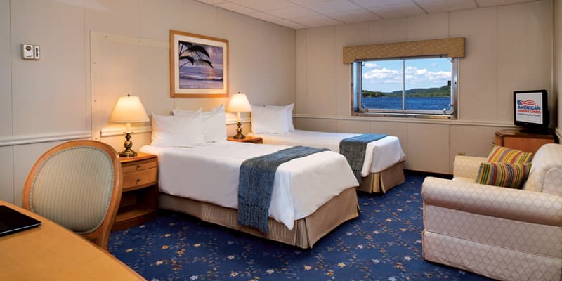 The class A stateroom offer guests quiet and comfort during their cruise. Featuring a desk, satellite TV, large oversized picture window and a spacious living area at 260 sq. ft., these relaxing staterooms are ideal for coastal cruising.