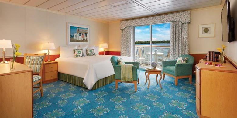 Veranda Suite (Private Balcony) With a generous 450 sq. ft. of relaxing space, each Veranda suite includes a private walk-out balcony to enjoy the panoramic views. Considered one of the finest staterooms on any cruise ship, guests will enjoy full hotel-sized bathrooms and large living area with sliding glass door.